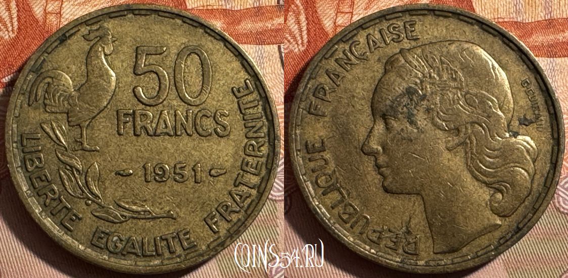 Франция 50 франков 1951 года, KM# 918, 403s-081