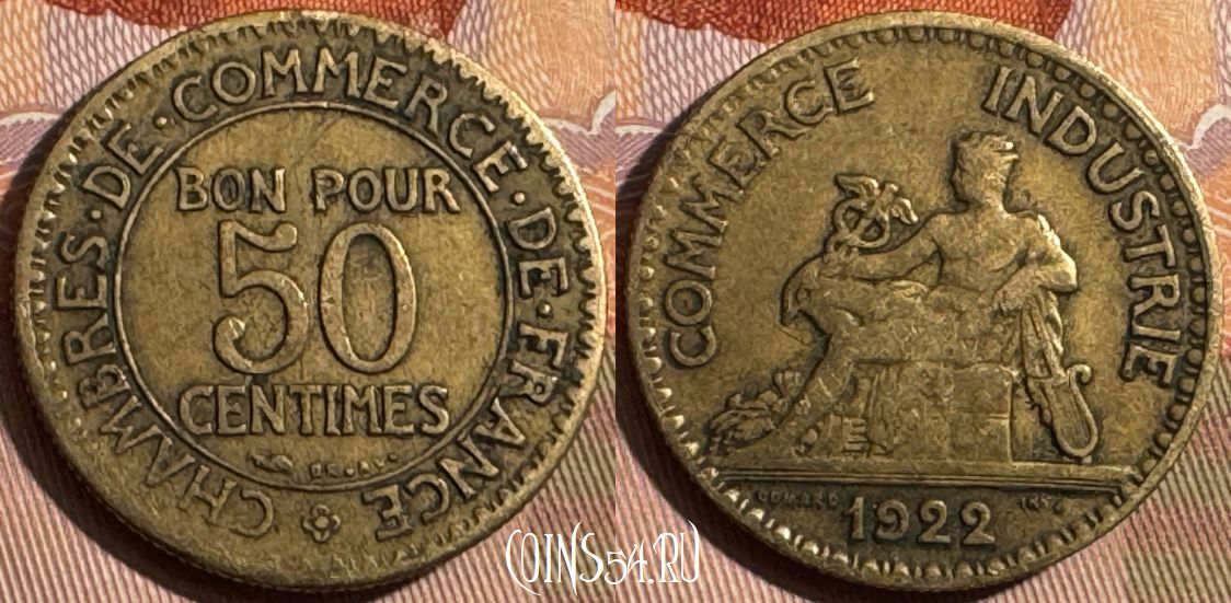 Франция 50 сантимов 1922 года, KM# 884, 371s-051