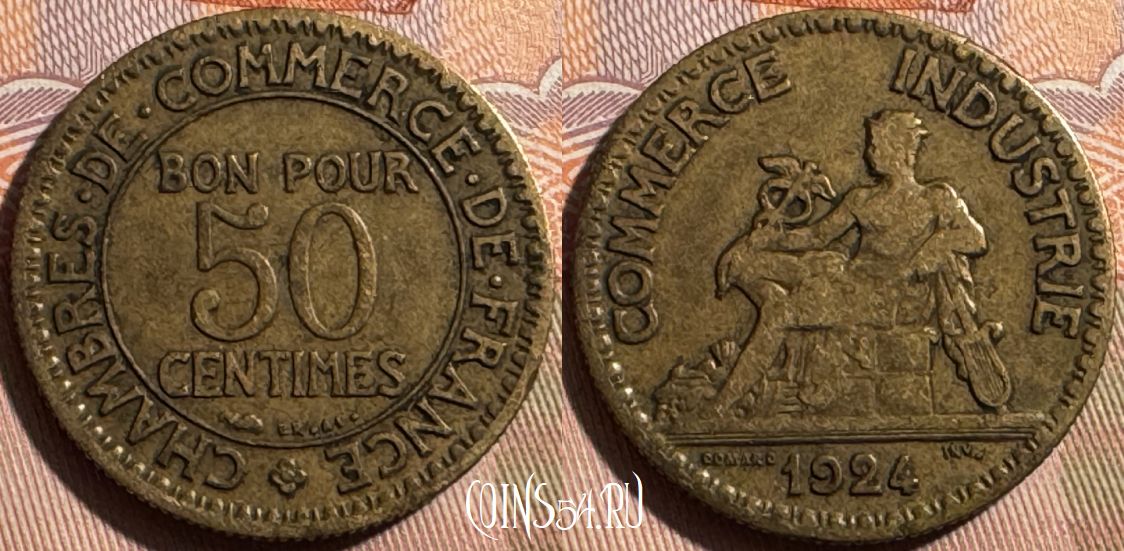 Франция 50 сантимов 1924 года, KM# 884, 396s-112