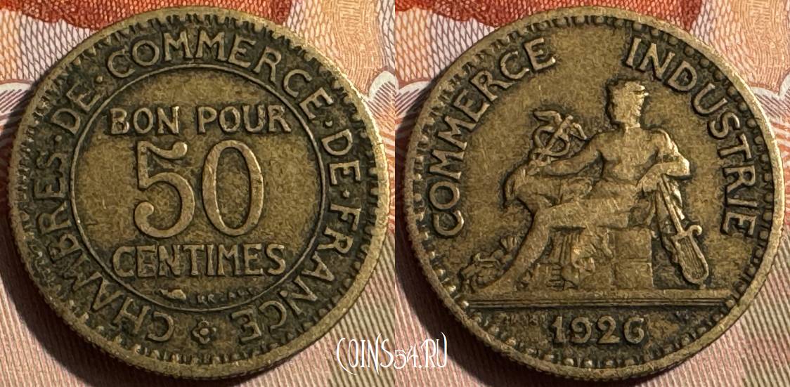 Франция 50 сантимов 1926 года, KM# 884, 329s-096