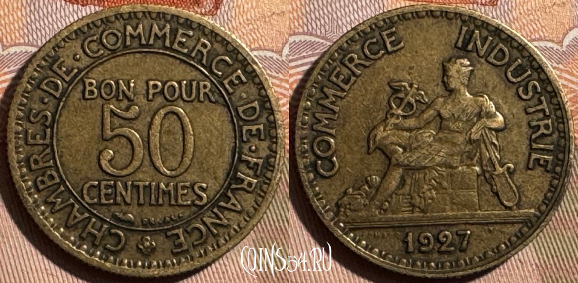Франция 50 сантимов 1927 года, KM# 884, 405s-010