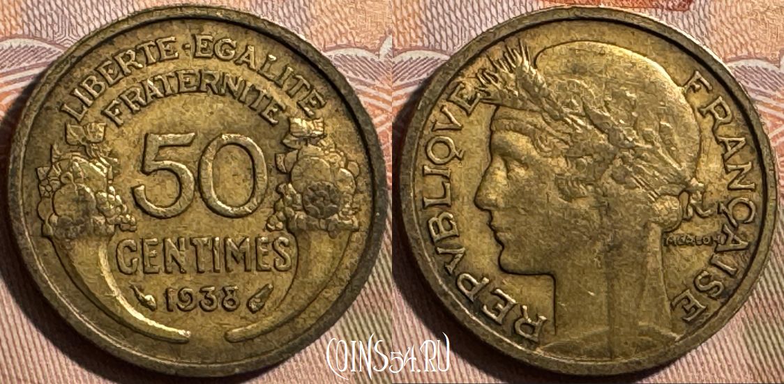 Франция 50 сантимов 1938 года, KM# 894, 402s-090