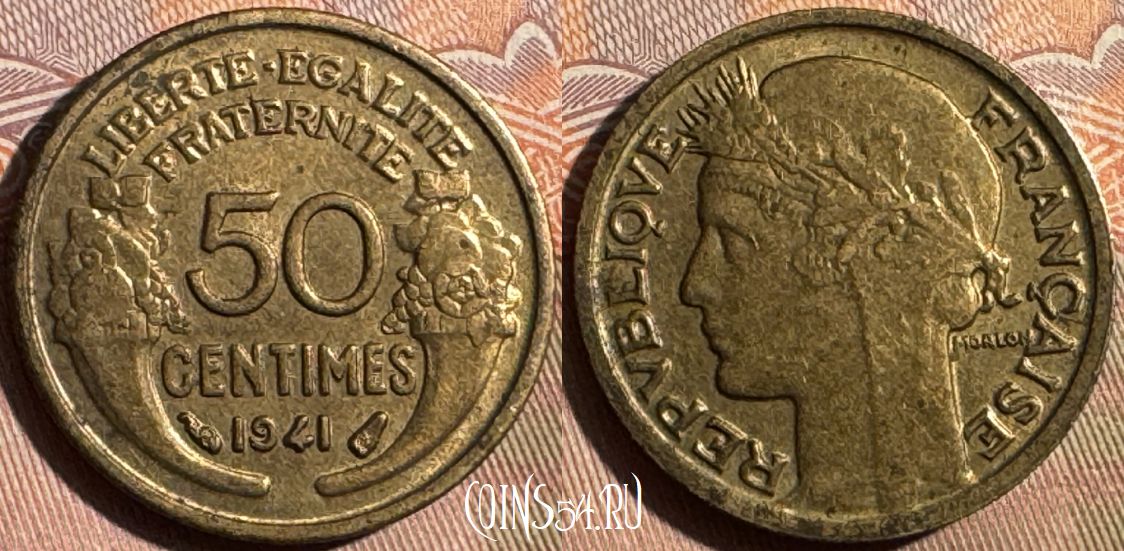 Франция 50 сантимов 1941 года, KM# 894, 357s-033