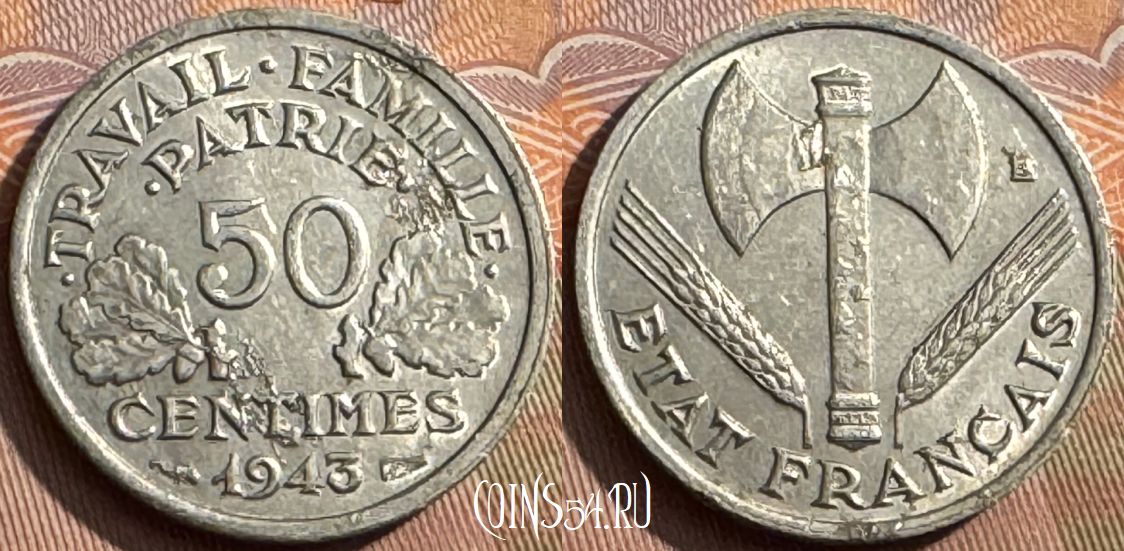 Франция 50 сантимов 1943 года, KM# 914, 386s-130
