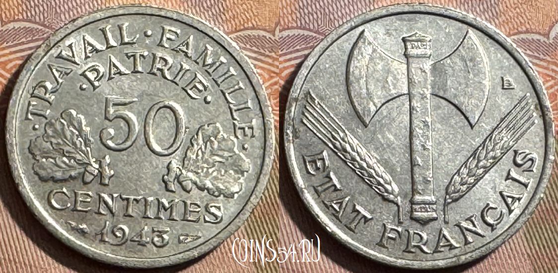 Франция 50 сантимов 1943 года, KM# 914, 405s-043