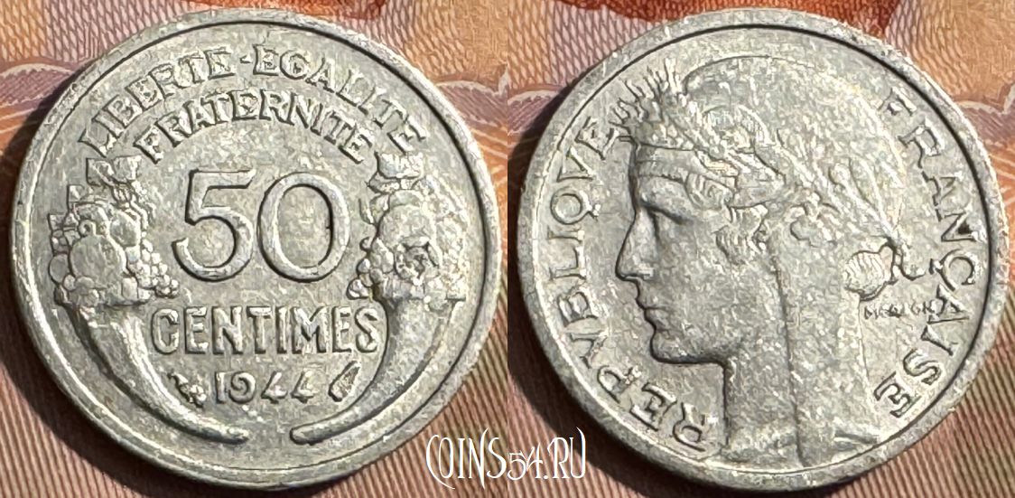 Франция 50 сантимов 1944 года, KM# 894a, 373s-106