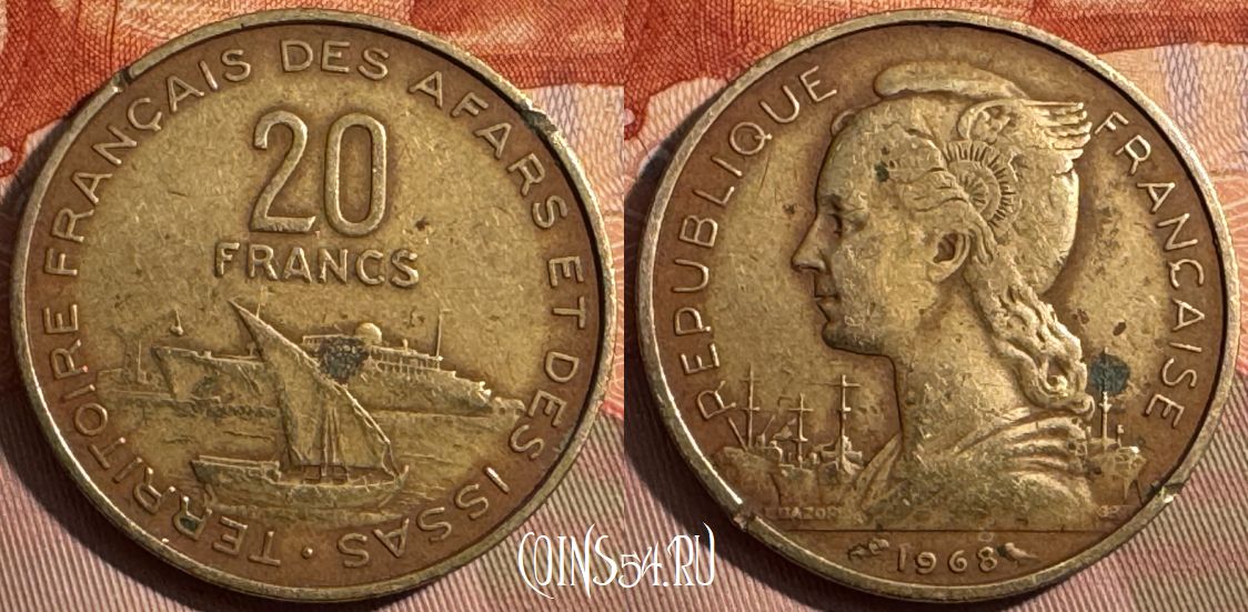Французские Афар и Исса 20 франков 1968 года, KM# 15, 372s-126