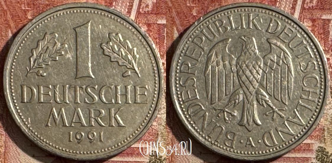 Германия 1 марка 1991 года A, KM# 110, 504s-080