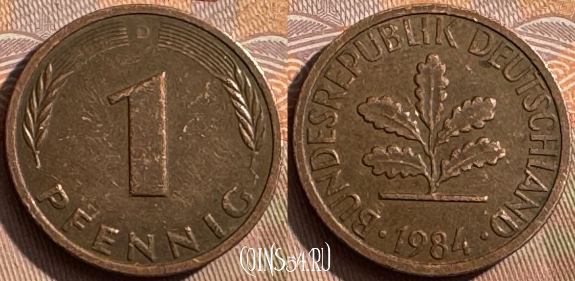 Германия 1 пфенниг 1984 года D, KM# 105, 393s-084