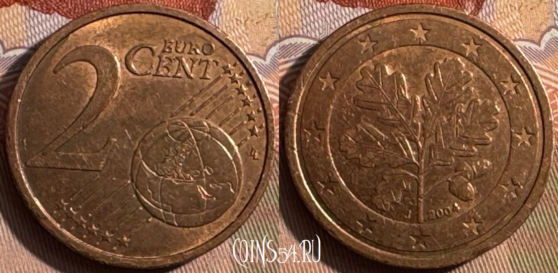 Германия 2 евроцента 2004 года J, KM# 208, 425s-063