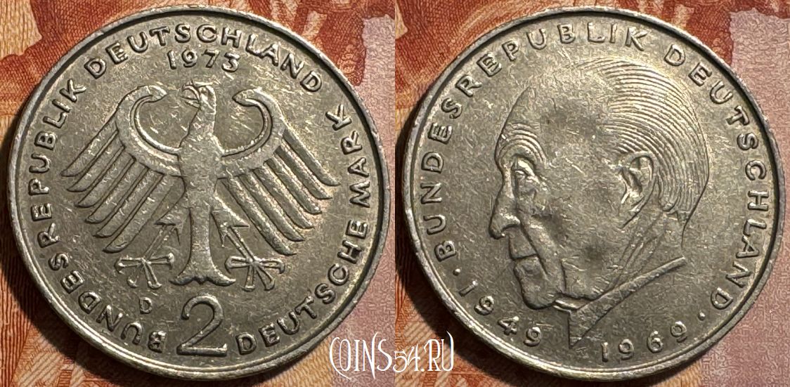 Германия 2 марки 1973 года D, KM# 124, 502s-024