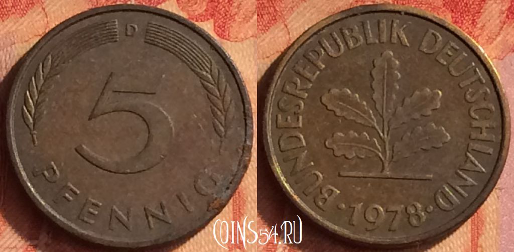 Германия 5 пфеннигов 1978 года D, KM# 107, 437o-060