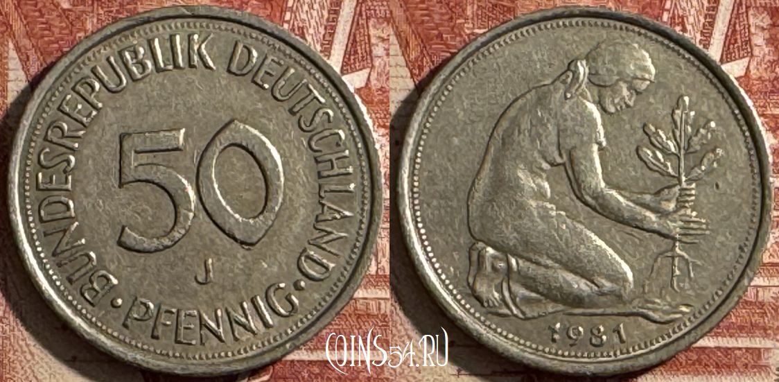 Германия 50 пфеннигов 1981 года J, KM# 109, 504s-081