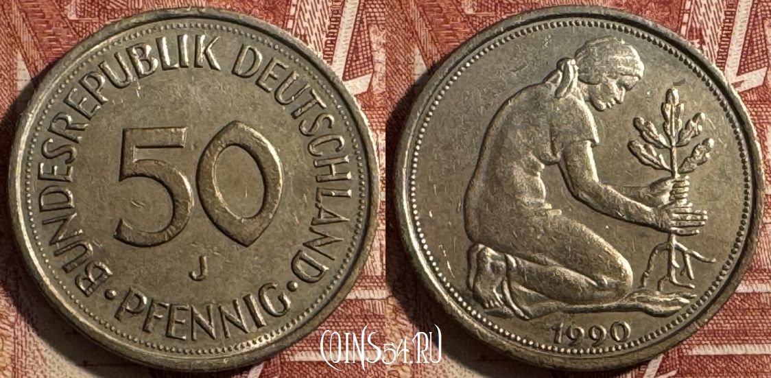 Германия 50 пфеннигов 1990 года J, KM# 109, 505s-101