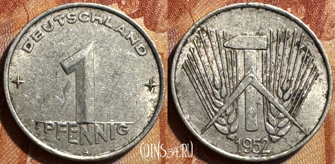 Германия (ГДР) 1 пфенниг 1952 года, KM# 5, 502s-043