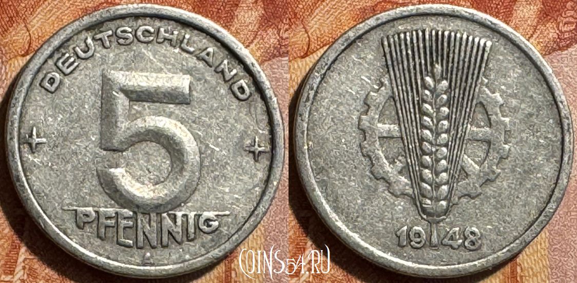 Германия (ГДР) 5 пфеннигов 1948 года, KM# 107, 502s-035
