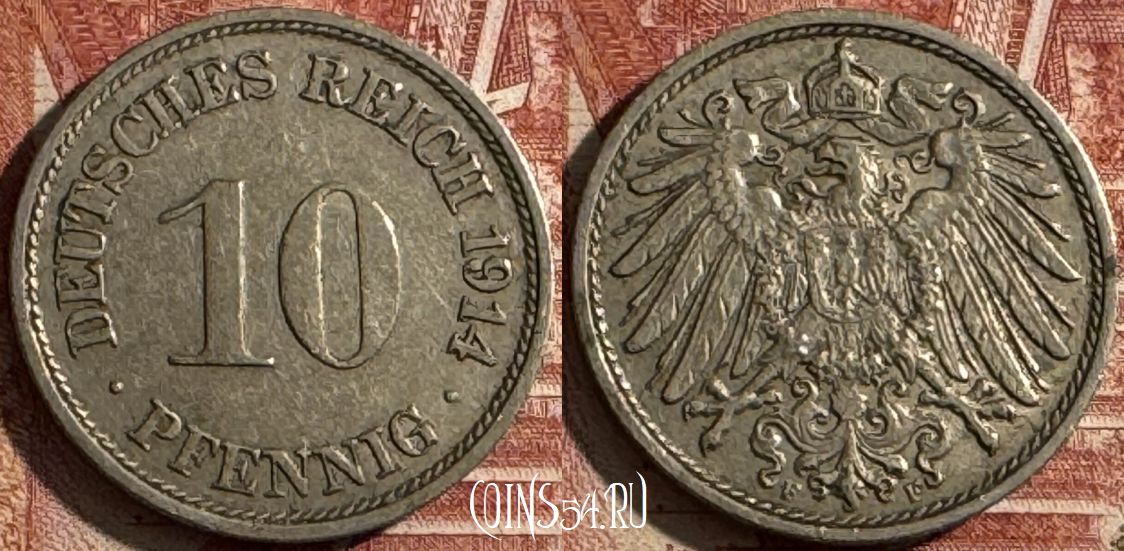 Германия (Империя) 10 пфеннигов 1914 года F, KM# 12, 505s-030