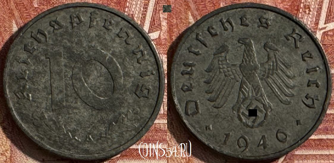 Германия (Третий рейх) 10 рейхспфеннигов 1940 года A, KM# 101, 504s-106