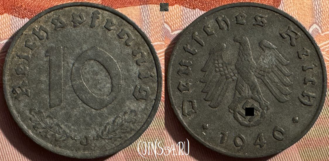 Германия (Третий рейх) 10 рейхспфеннигов 1940 года J, KM# 101, 383s-138