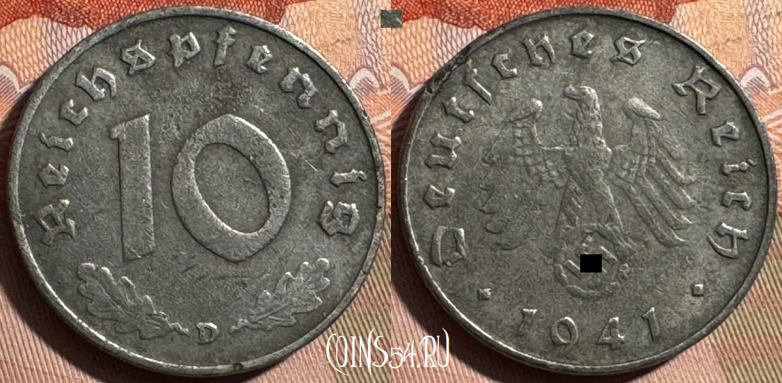 Германия (Третий рейх) 10 рейхспфеннигов 1941 года D, KM# 101, 405s-054