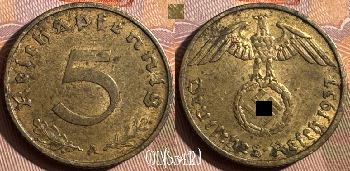 Германия (Третий рейх) 5 рейхспфеннигов 1937 года A, KM# 91, 373s-115