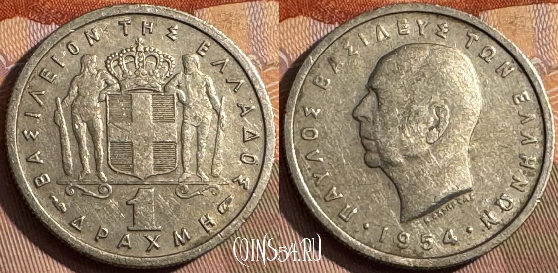 Греция 1 драхма 1954 года, KM# 81, 379s-018