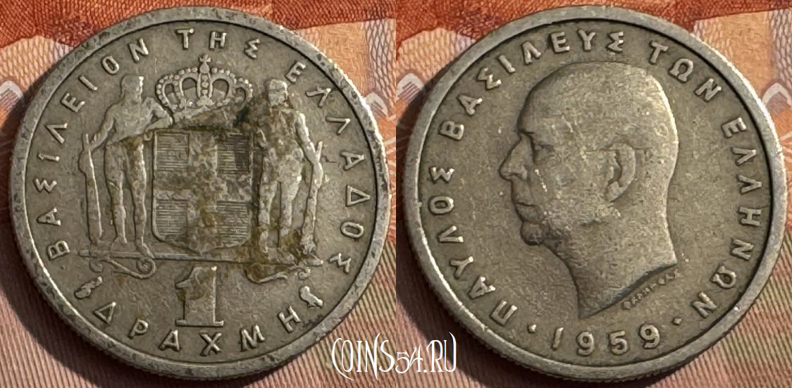 Греция 1 драхма 1959 года, KM# 81, 389s-037