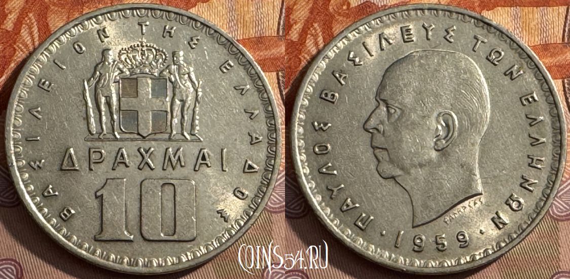 Греция 10 драхм 1959 года, KM# 84, 387s-041