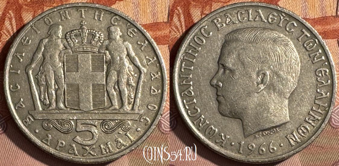 Греция 5 драхм 1966 года, KM# 91, 512s-133