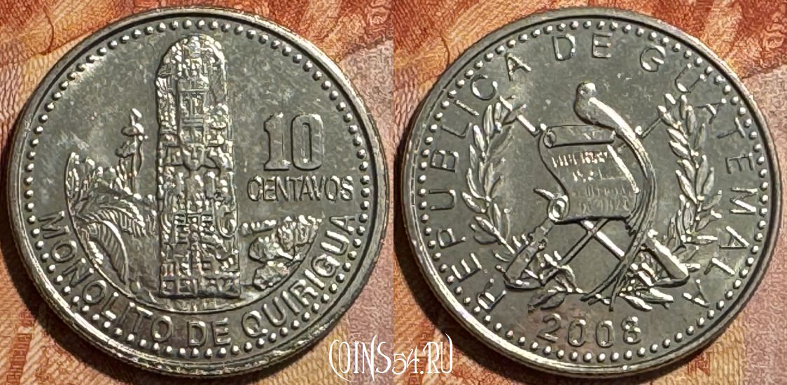 Гватемала 10 сентаво 2008 года, KM# 277, 502s-104