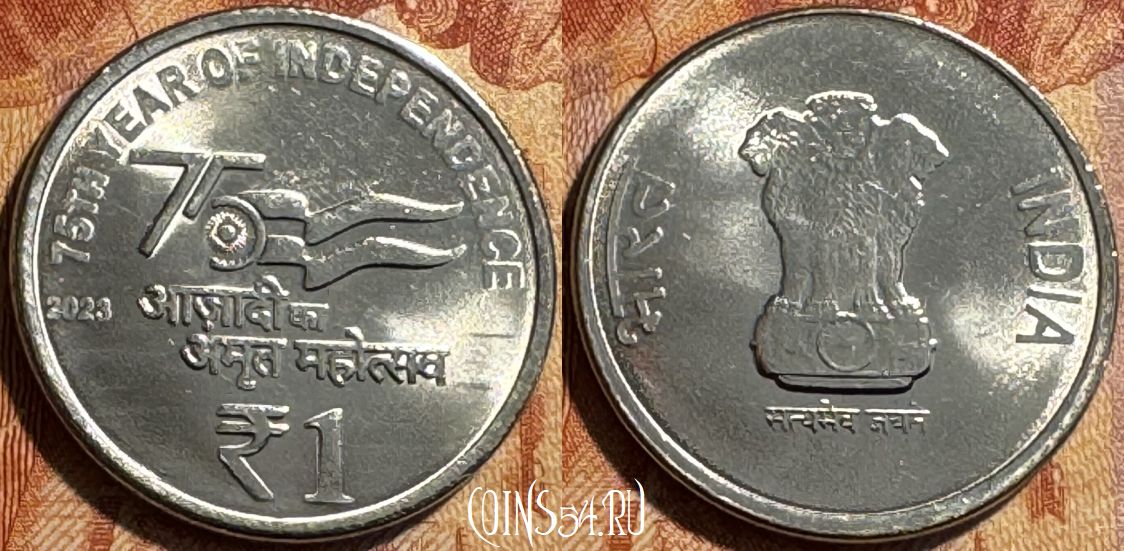 Реверс: ₹ 1 75 75TH YEAR OF INDEPENDENCE आजादी का अमृत महोत्सव