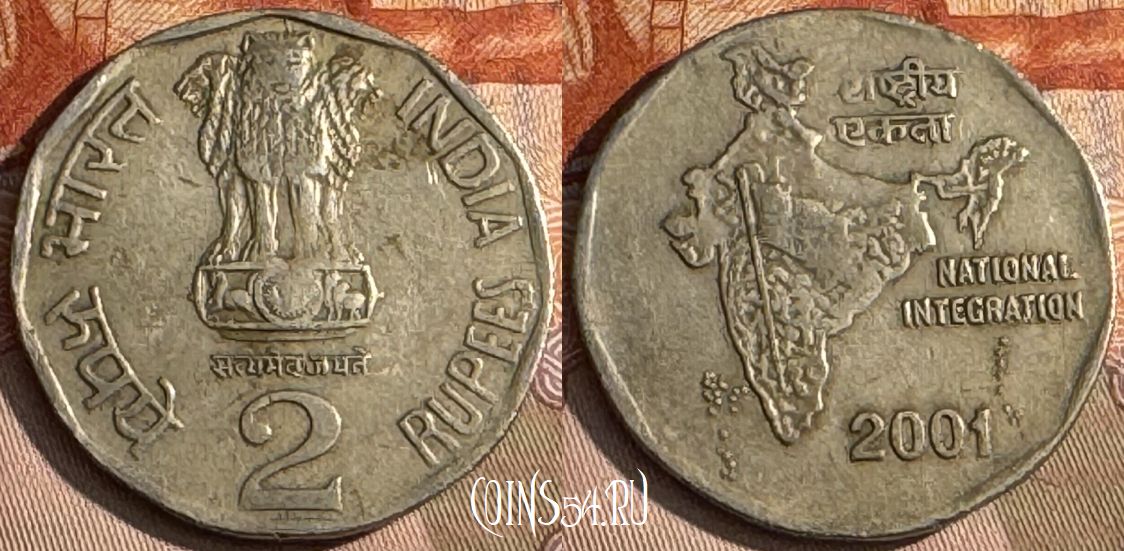Индия 2 рупии 2001 года, Калькутта, KM# 121.3, 223t-056