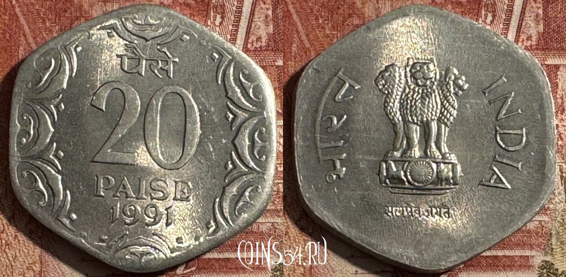 Индия 20 пайс 1991 года, Калькутта, KM# 44, 505s-062
