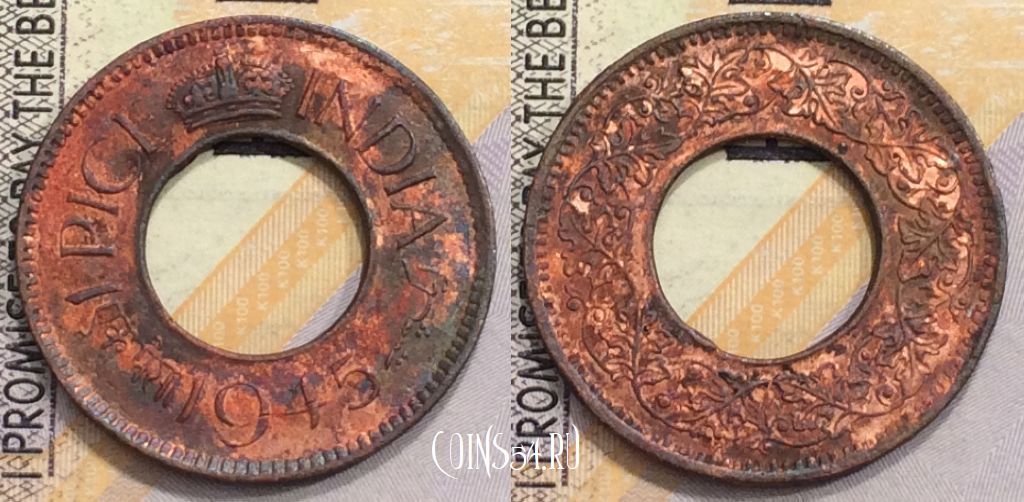 Монета Индия (Британская) 1 пайс 1945 года, KM# 533, 153-049