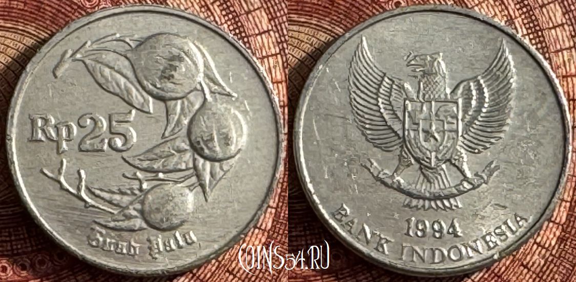 Индонезия 25 рупий 1994 года, KM# 55, 367s-024