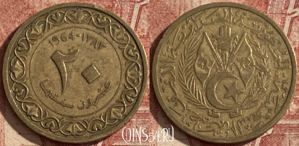 Алжир 20 сантимов 1964 года, KM# 98, 120q-077