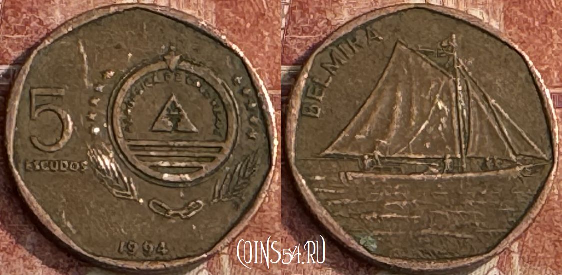 Кабо-Верде 5 эскудо 1994 года, KM# 36, 244t-100
