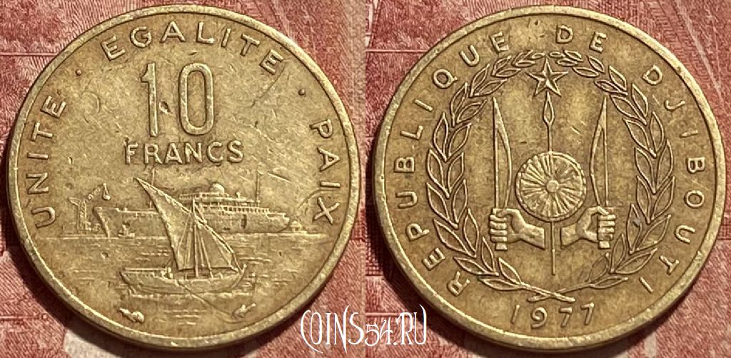 Джибути 10 франков 1977 года, KM# 23, 462q-019