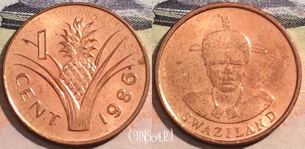 Монета Свазиленд 1 цент 1986 года, KM# 39, 172-017