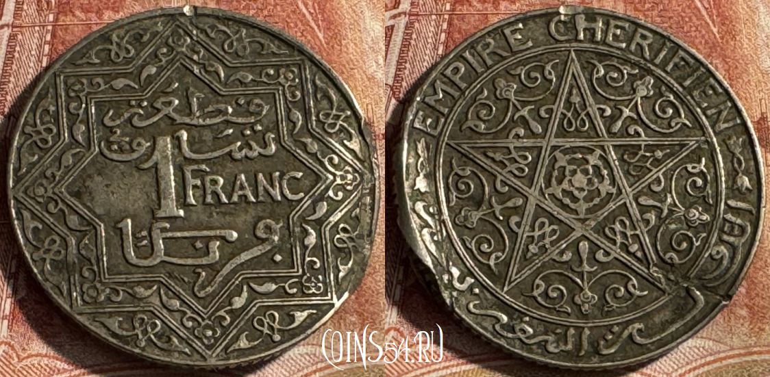 Марокко 1 франк 1921 года, Y# 36, 454s-010