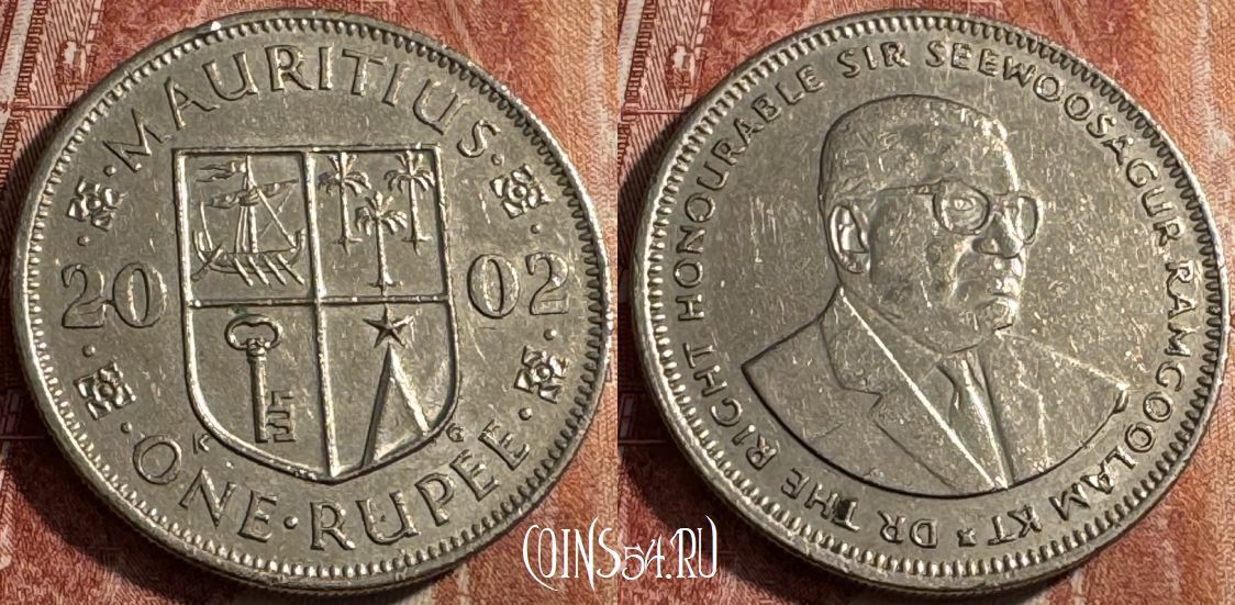 Маврикий 1 рупия 2002 года, KM# 55, 042s-004