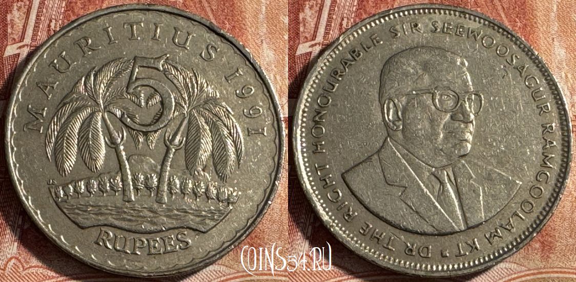 Маврикий 5 рупий 1991 года, KM# 56, 453s-016