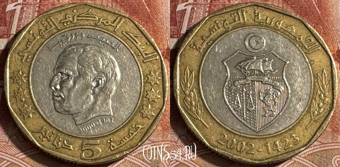Тунис 5 динаров 2002 года, KM# 444, 042s-104