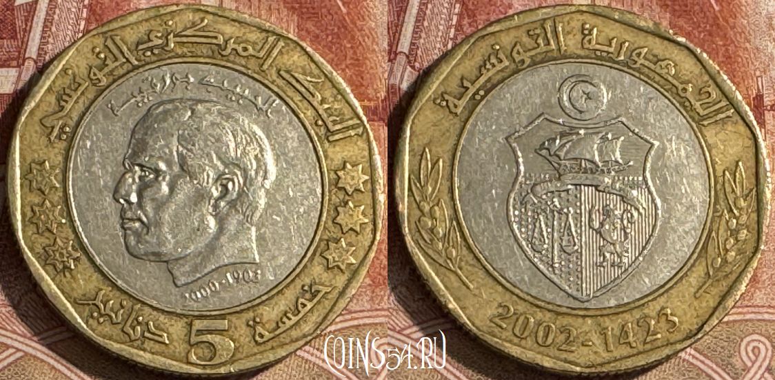 Тунис 5 динаров 2002 года, KM# 444, 095t-019