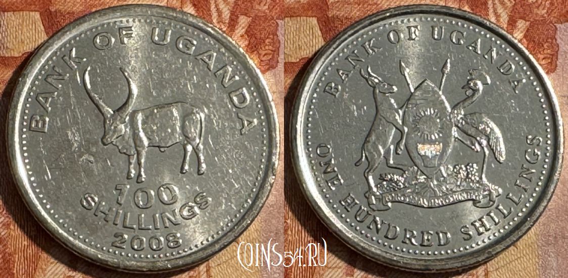 Уганда 100 шиллингов 2008 года, KM# 67a, 455s-038