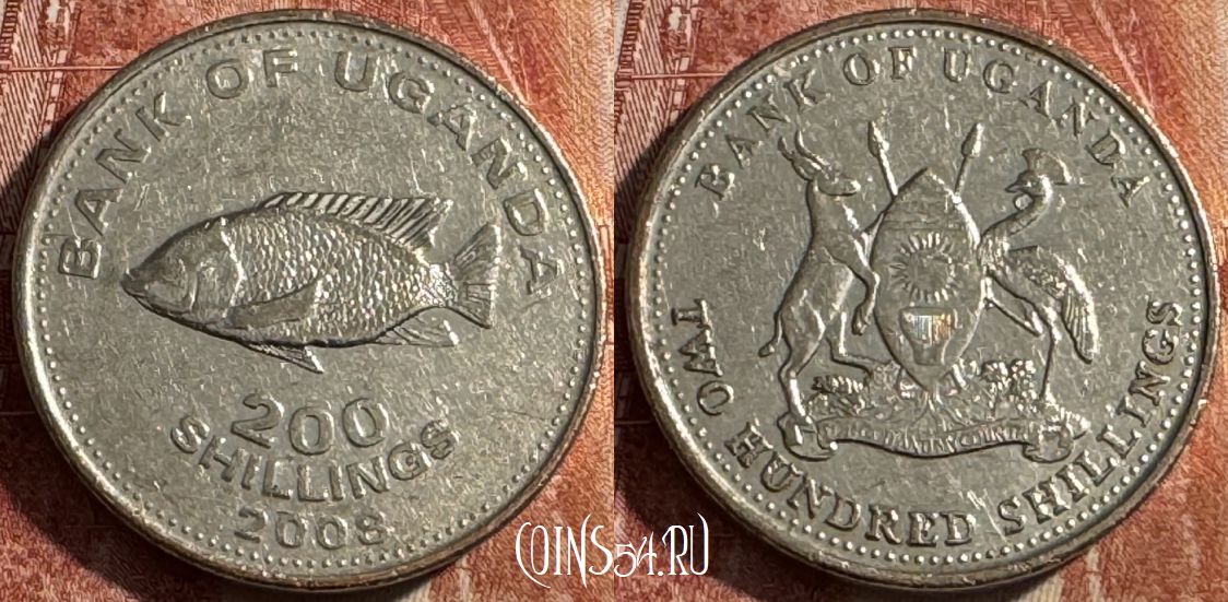 Уганда 200 шиллингов 2008 года, KM# 68a, 490s-039