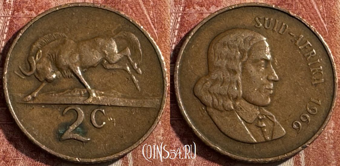 ЮАР 2 цента 1966 года, SUID-AFRIKA, KM# 66.2, 479s-004