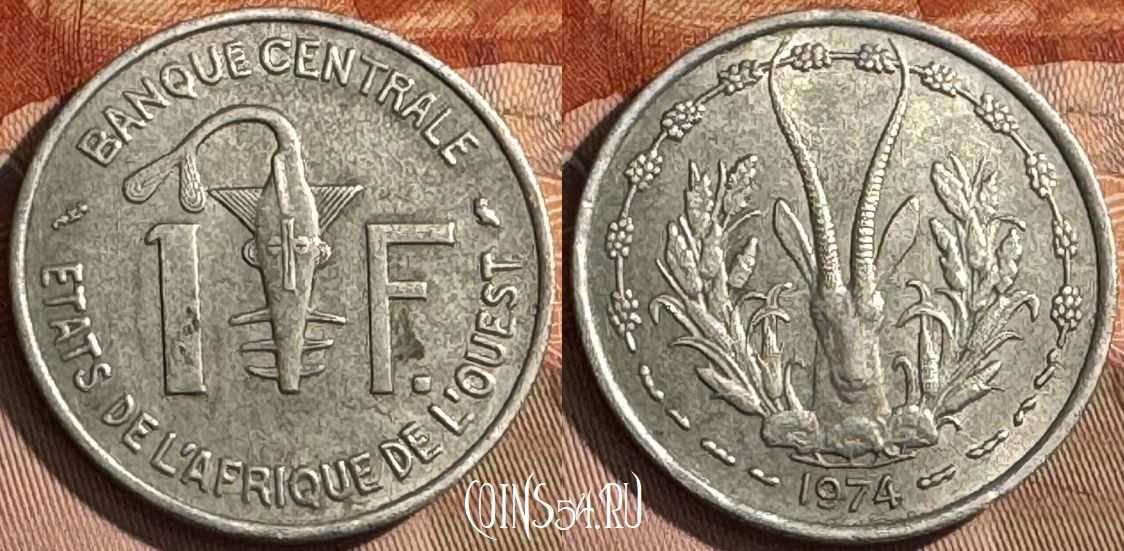 Западная Африка 1 франк 1974 года, KM# 3.1, 513s-037