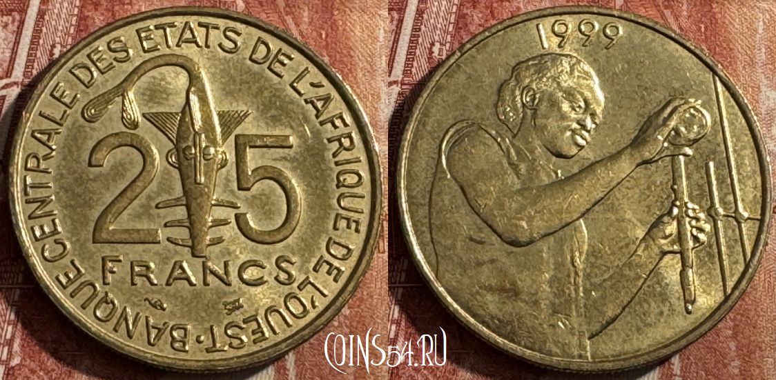 Западная Африка 25 франков 1999 года, KM# 9, 480s-026