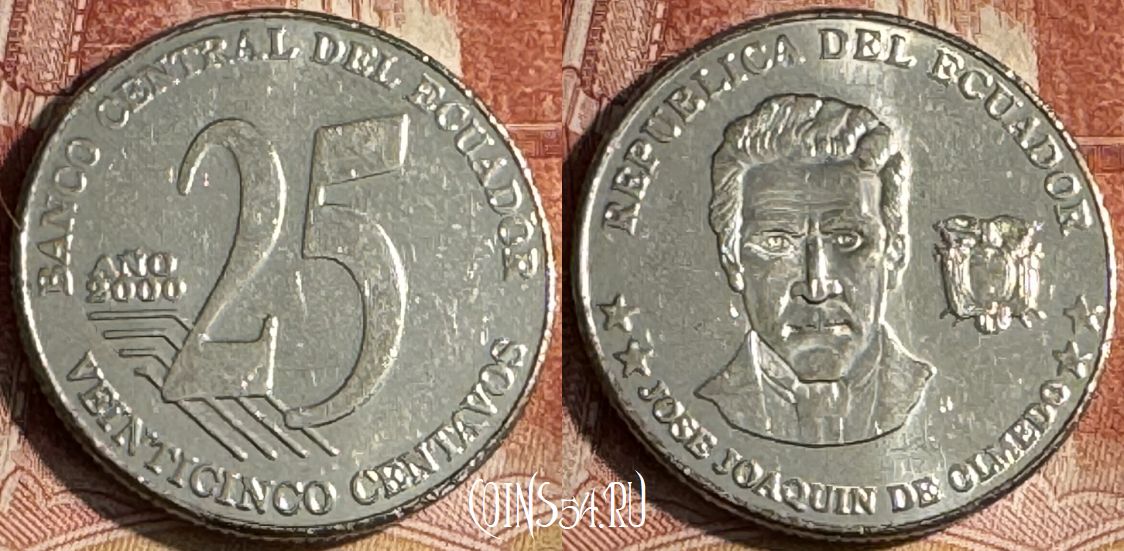 Эквадор 25 сентаво 2000 года, KM# 107, 175t-143